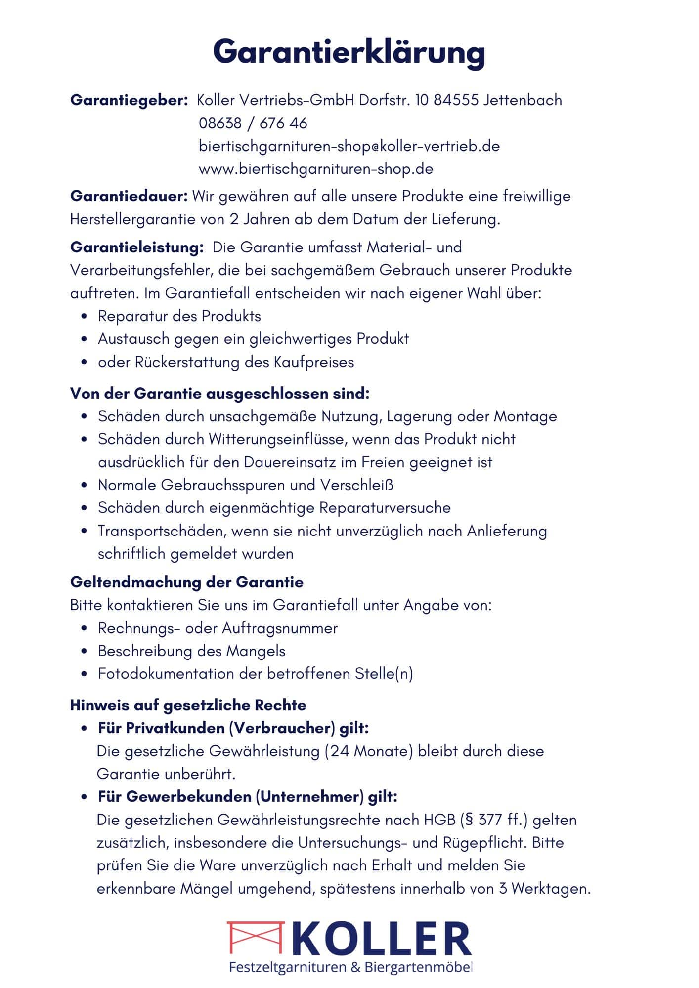 Wir stehen für hochwertige Biergartenmöbel und Festzeltgarnituren in echter Brauereiqualität. Auf dieser Seite finden Sie unsere aktuellen Garantiebedingungen als PDF zum Download. So wissen Sie genau, worauf Sie sich verlassen können.