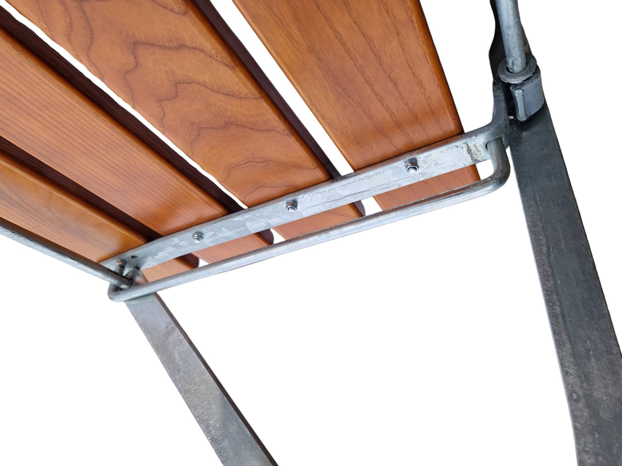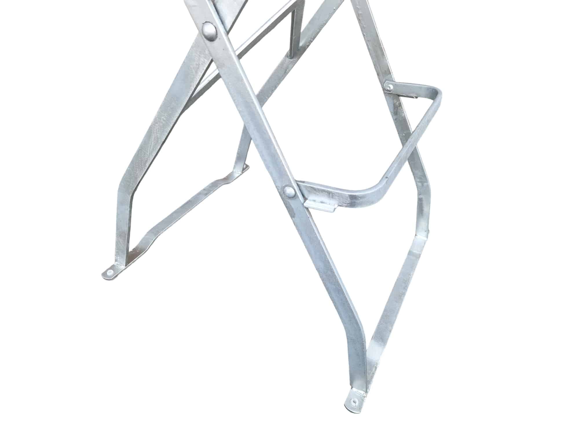 Das Gestell des Biergartenhochstuhls besteht aus hochwertigem Flachstahl und ist in zwei Varianten erhältlich: feuerverzinkt in Silber sowie galvanisch verzinkt und pulverbeschichtet in Schwarz. Diese robusten Ausführungen bieten ausgezeichneten Korrosionsschutz und tragen zur langen Lebensdauer des Hochstuhls bei. Die solide Konstruktion sorgt dafür, dass der Biergartenhochstuhl auch bei intensiver Nutzung stabil und belastbar bleibt. Ein besonderes Merkmal des Stahlgestells ist die ein- und ausklappbare Fußablage, die zusätzlichen Komfort und Flexibilität bietet.