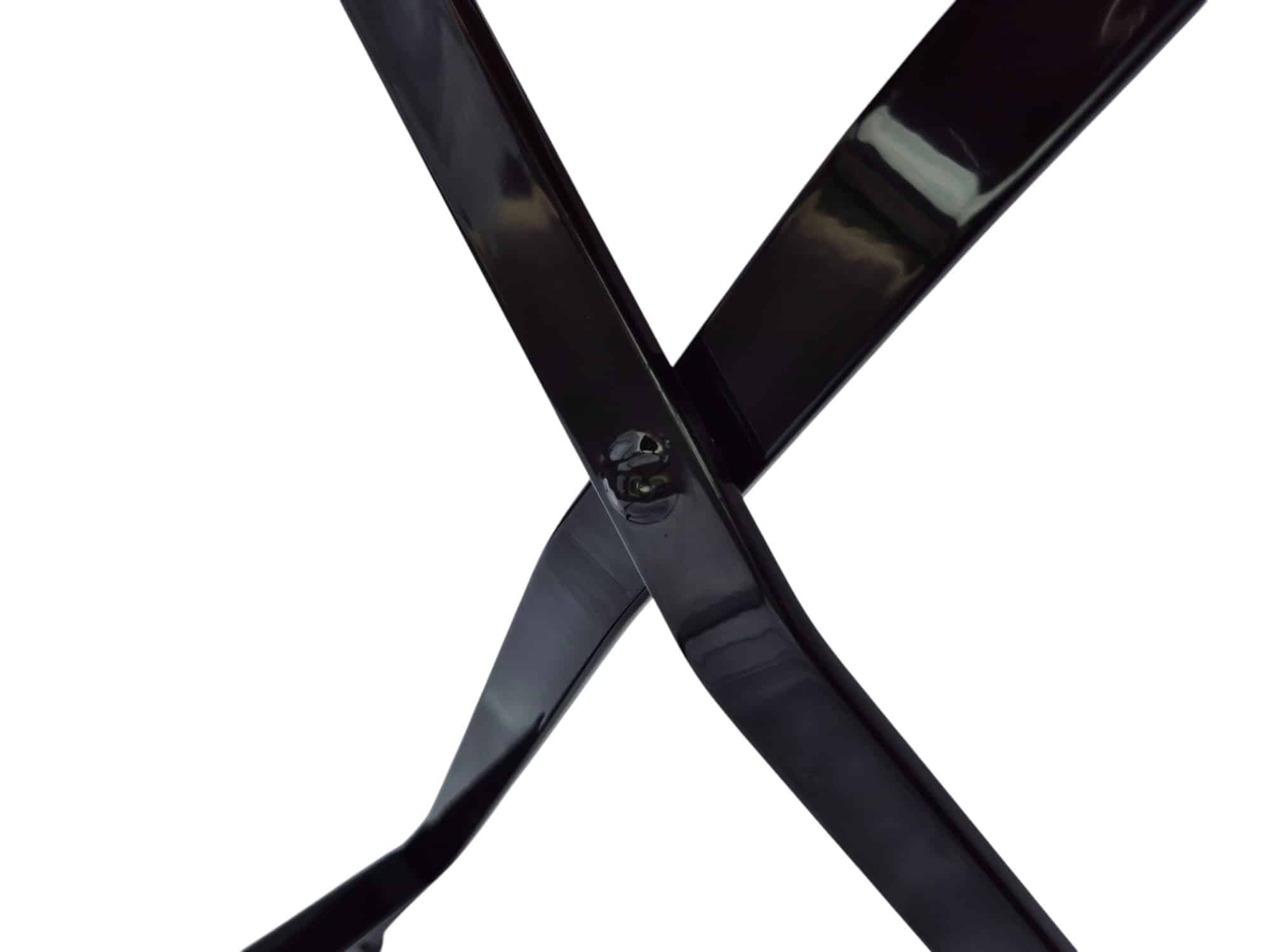 Das Besondere an der Mira-Serie ist das charakteristische Gestell: Gefertigt aus 25 x 6 mm starkem Flachstahl, glänzt es in edlem Schwarz. Die galvanische Verzinkung mit anschließender Pulverbeschichtung schützen den Stahl optimal vor Korrosion und machen den Tisch besonders wetterbeständig. Typisch für den Mira-Stil ist die geschwungene untere Querstrebe, die nicht nur ein optisches Highlight darstellt, sondern auch als bequeme Fußablage dient – ein Plus an Komfort, das du schnell nicht mehr missen möchtest.