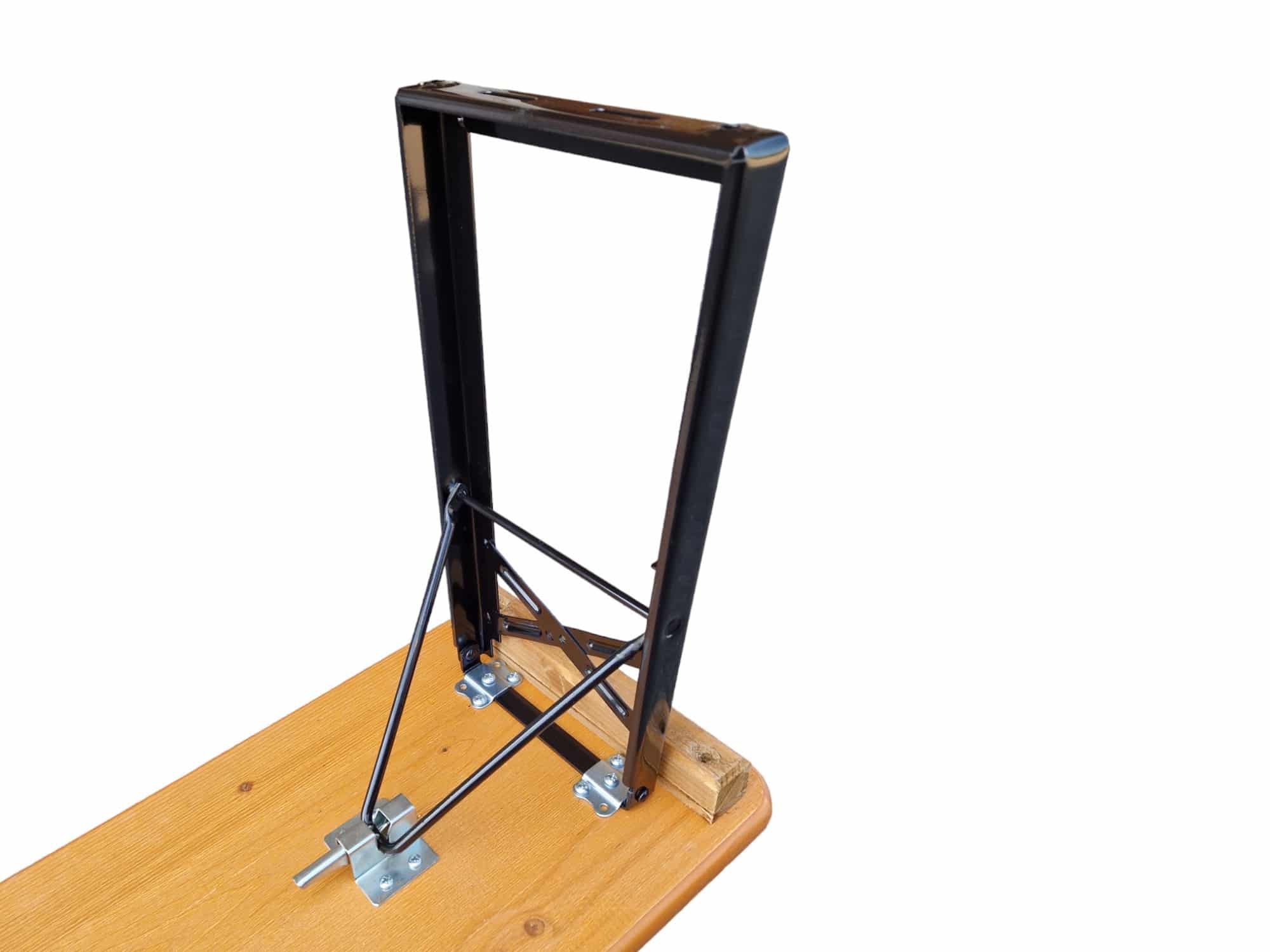 Das Eisengestell ist ebenfalls besonders robust: Das optimierte C-Profil sorgt für zusätzliche Stabilität, während die galvanische Verzinkung in Kombination mit einer schwarzen Pulverbeschichtung für einen ausgezeichneten Korrosionsschutz sorgt. Auch die hochwertigen Schnäpper tragen zur Langlebigkeit und Sicherheit bei.